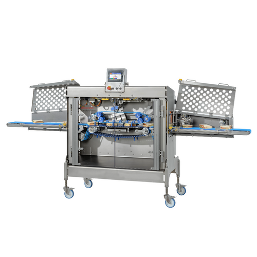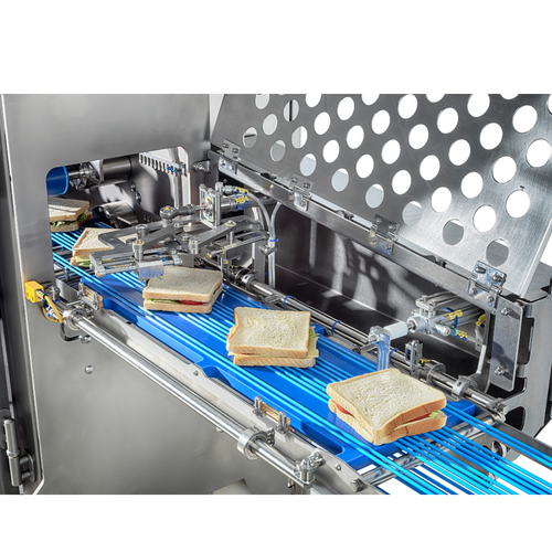The Sandwichboy cuts sandwiches and stuffed wraps of perfect quality. The products placed on the conveyor belt of the machine will be automatically aligned and conveyed through the cutting area. Then they can be removed from the conveyor belt.